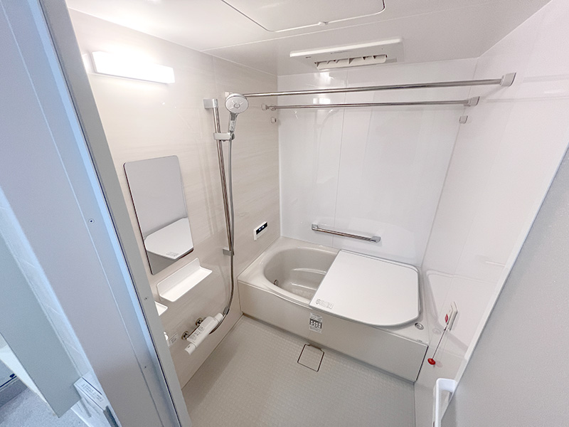 浴室にはマンション用ユニットバスとして人気の高い LIXIL「リノビオV」を採用し、浴室換気乾燥暖房機を設置することで、寒さ対策やカビ対策にも配慮しています。