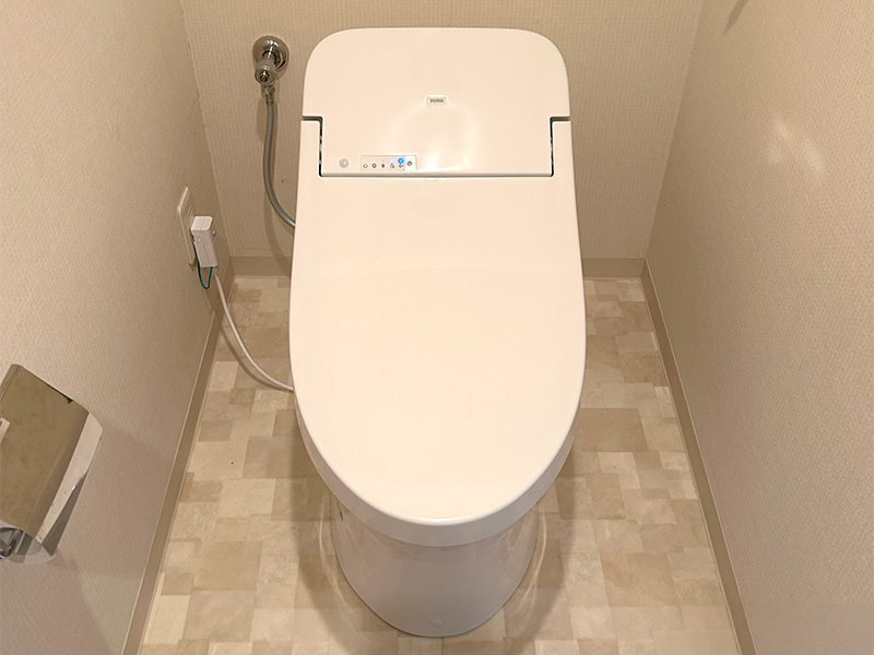 組み合わせ式のトイレから一体型トイレへ交換したことで、TOTOのGGならではのすっきりとしたデザインが際立ち、タンク上部にもゆとりが生まれ、空間が広く感じられるようになりました。