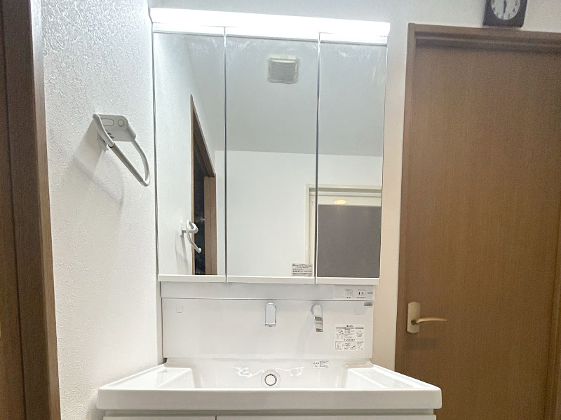 今回の工事では洗面所全体が綺麗になり、収納力も増えた事で整理整頓ができ、生活が少しでも楽になっていれば嬉しい限りです。