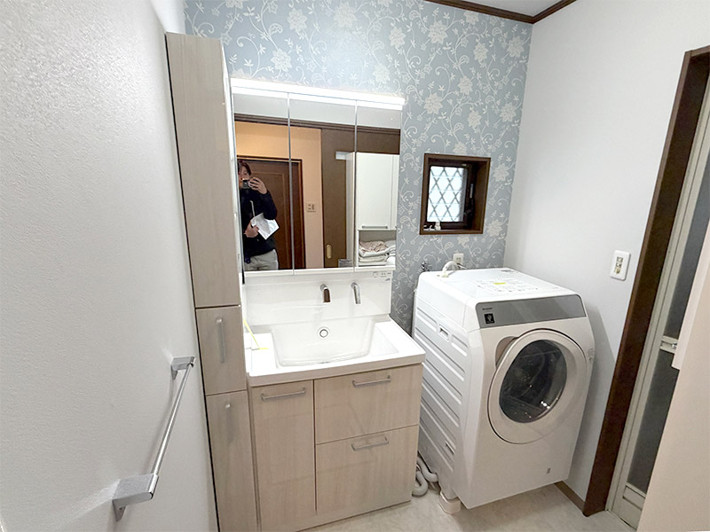 今回のリフォームでは、限られた洗面スペースの中で「収納力」と「見た目のスッキリ感」をいかに両立させるかがポイントでした。